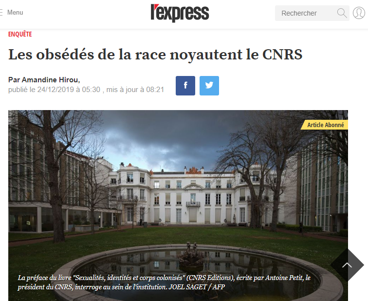 est loin d'approuver : "Les obsédés de la race noyautent le CNRS"