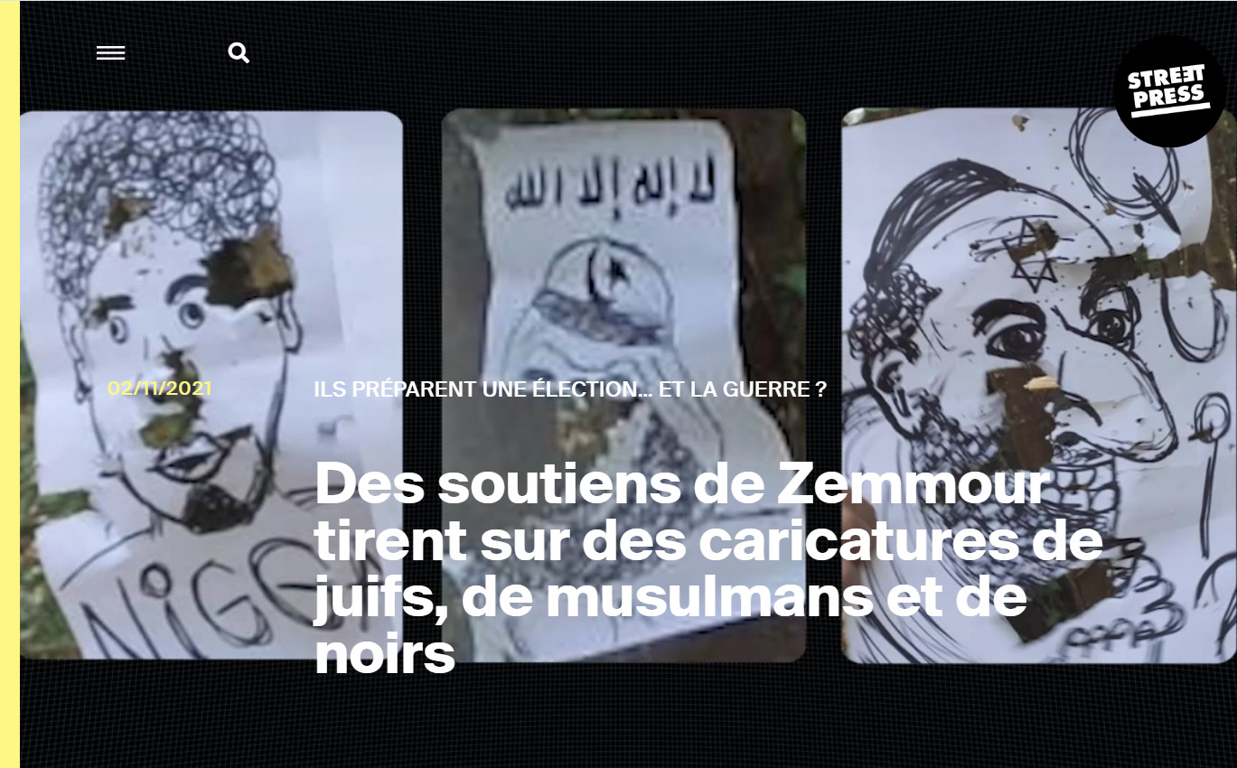 Des soutiens de Zemmour tirent sur des caricatures de juifs, de musulmans et de noirs"
