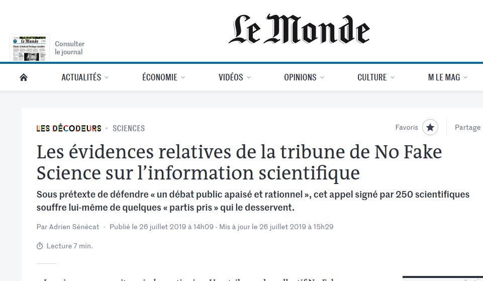 Adrien Sénécat, "peut donner l’impression que No Fake Science a fait son choix dans le