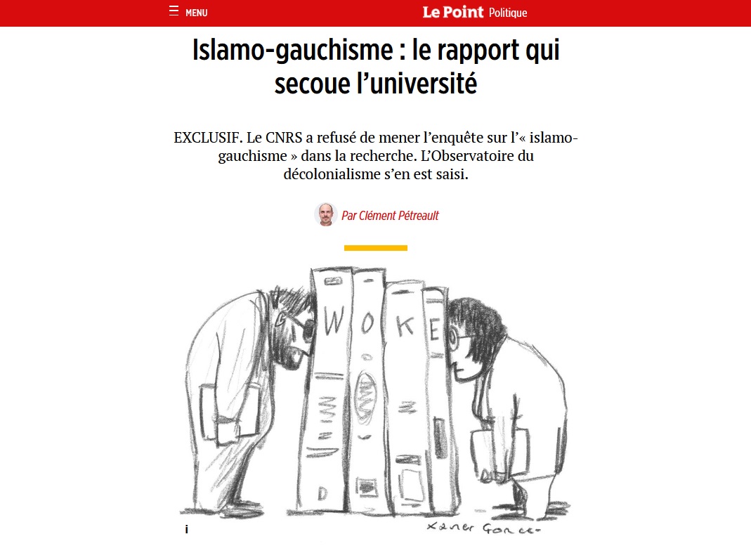oppressions réelles ou supposées", affirme ainsi Le Point le 16 juin, tout en publiant aussi les "bonnes feuilles" de ce rapport remis au gouvernement par le collectif. Tous les interlocuteurs de l'hebdomadaire semblent être des membres de l'Observatoire du décolonialisme, et l'un d'eux, l'expert électoral Pascal Perrineau, affirme que Sciences Po Paris propose plus de cours sur le genre que sur les collectivités locales – ce qui paraît absurde... et a été fermement démenti par l'école. "À l’appui d’une restitution quasi brute de dizaines de documents universitaires, l’Observatoire tend à rendre compte de «l’étendue de la pénétration des idées décoloniales dans le discours savant»", analyse de son côté Le Figaro le 17 juin.
