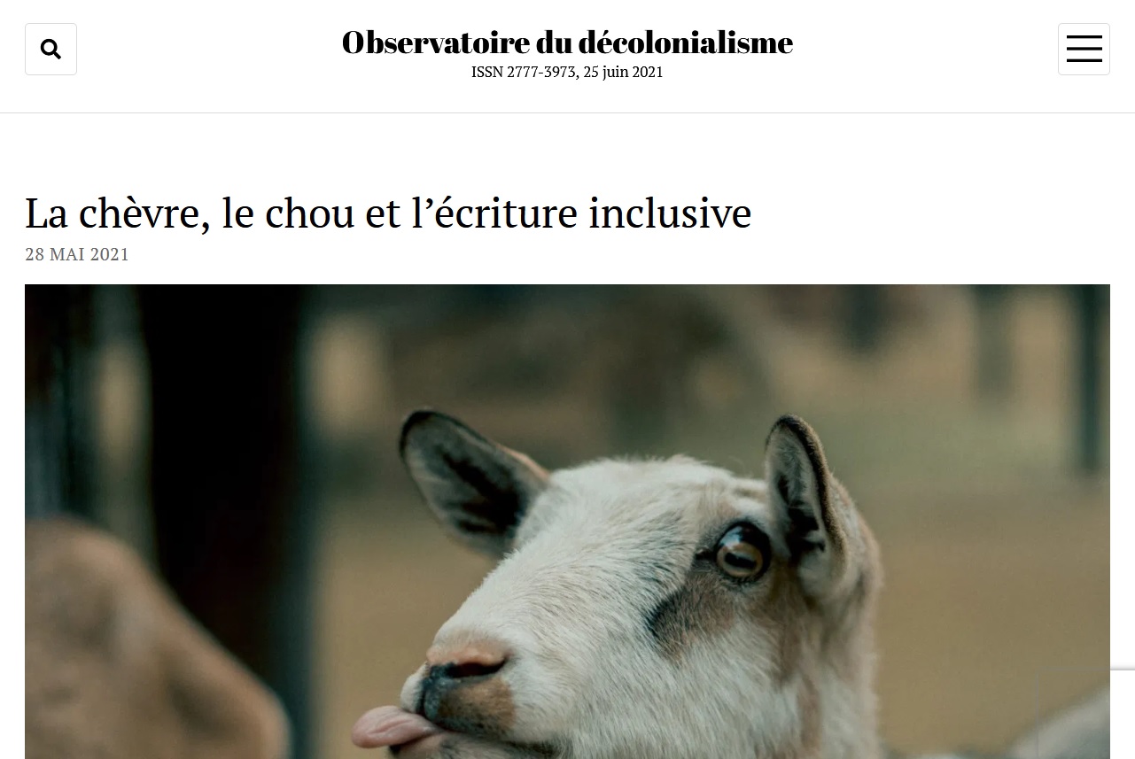 automatique de thèses est disponible (il ne fonctionnait pas quand nous avons voulu l'utiliser ce 25 juin) pour se moquer des nouveaux courants des pensée antiracistes et féministes. Dans le "lexique des termes qui font le décolonialisme", 39 mots désignés comme tenant du discours décolonial sont définis. Ils sont parsemés