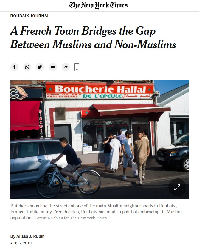 "Roubaix (...) se démarque par ses efforts, discrets mais remarqués, promouvant une communauté musulmane active, et a ainsi diminué les tensions ethniques et sectaires qui divisent d'autres endroits de France,"