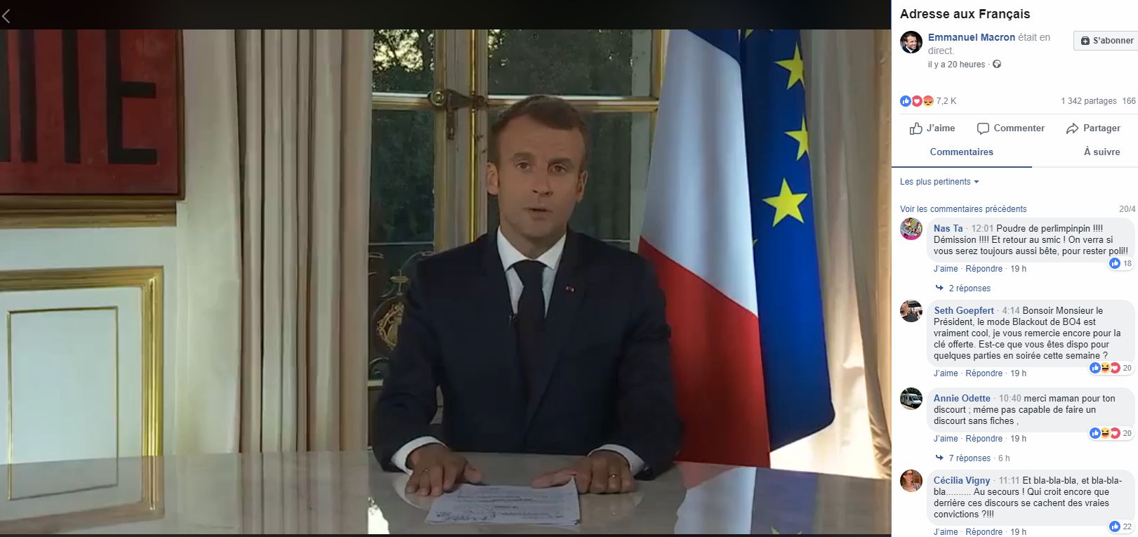 Il est 20 heures tapantes, ce mardi 16 octobre. La journée du remaniement ministériel (déjà "non-info" de BFM une semaine auparavant) se termine. Et le président Emmanuel Macron délivre sur sa page Facebook une allocution d'une dizaine de minutes, enregistrée dans l'après-midi. Souvent hésitant, s'interrompant entre les phrases pour relire ses notes - astucieusement placées sur la table en bord de cadre, pour qu'on puisse y apercevoir les ratures - Emmanuel Macron déroule son discours. A coup d'assurance : il n'y aura "ni tournant, ni changement de cap politique