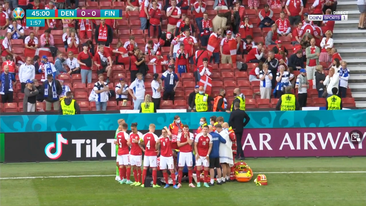 Comment filmer la mort en direct ? C'est la question qui s'est posée au réalisateur du match Danemark-Finlande, samedi après-midi, lorsque le Danois Christian Eriksen s'est effondré sur la pelouse du stade Parken de Copenhague, quelques minutes avant la mi-temps. Par bonheur, le joueur, après de longs instants dramatiques et un massage cardiaque, a repris conscience avant d'être évacué sur une civière.