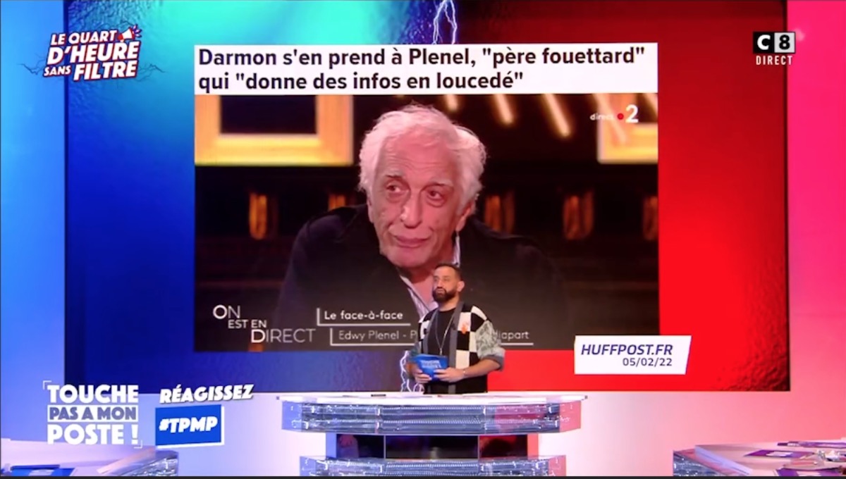 Mais sur le plateau de TPMP, le sujet du documentaire est vite laissé de côté pour développer de violentes critiques à l'égard d'Edwy Plenel. Alors qu'Hanouna rappelle à plusieurs reprises que Gérard Darmon "est un ami", il note à propos de la joute qui a opposé les deux hommes chez Ruquier : "Edwy Plenel a parlé beaucoup d'antisémitisme samedi soir. Vous savez, quand on parle un peu trop de quelque chose, c'est qu'il y a un souci à un moment." Valérie Bénaïm enfonce le clou : "On peut lui rappeler l'article qu'il avait sur les militants de l'organisation palestinienne Septembre Noir aux J.O. où il s'était félicité... enfin, pas félicité mais en tout cas il avait dit qu'on pouvait comprendre qu'on tue des athlètes israéliens."