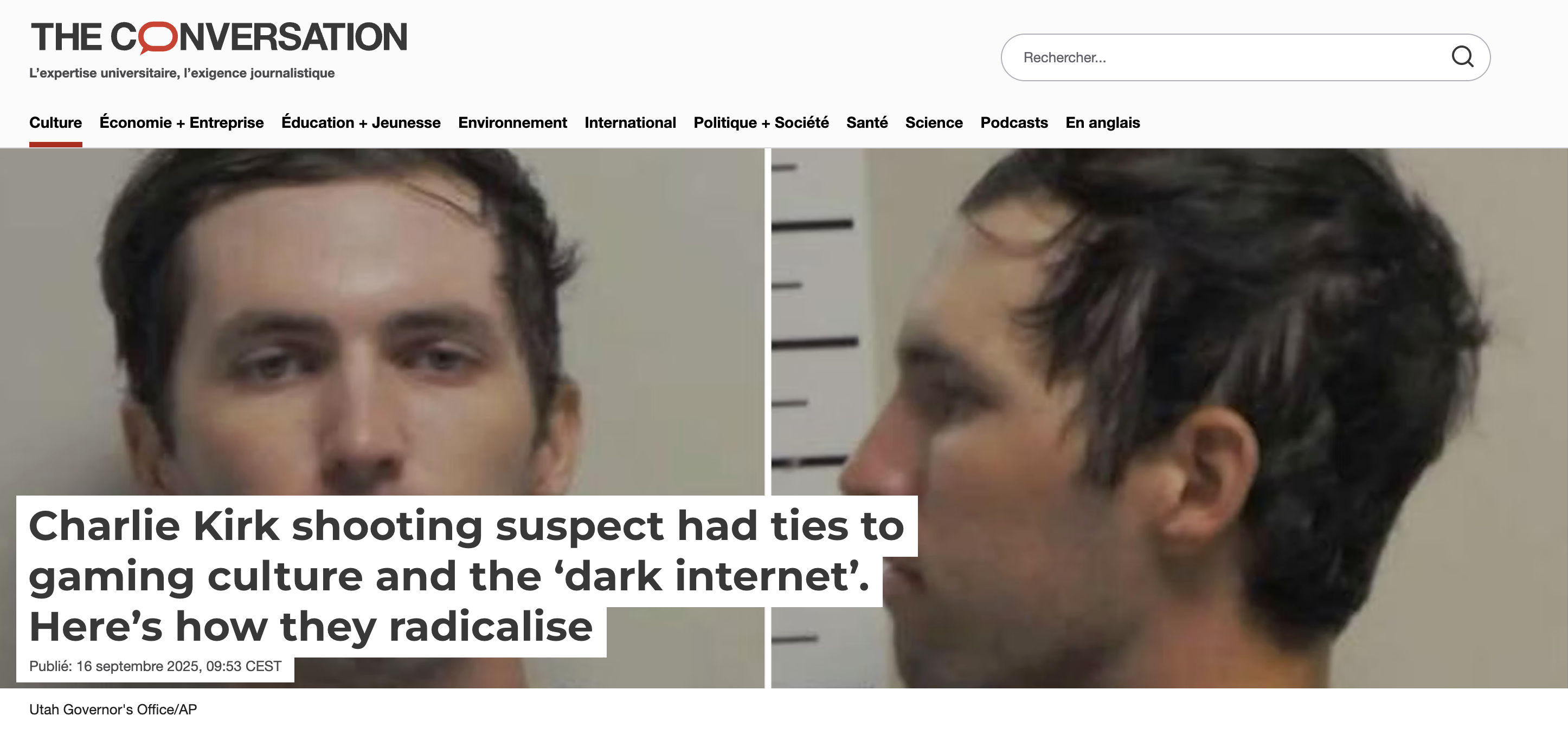 Au-delà de son lien avec Internet, Tyler Robinson ne vote pas, n'est affilié à aucun parti, et fréquente des sphères idéologiques opposées. Venu d'une famille de Mormons pro-Trump (Robinson décrit son père comme "un énorme MAGA"), il est en relation avec son colocataire trans et s'insurge donc (logiquement) contre la transphobie de Charlie Kirk - qui, rappelle Libération, décrivait la transidentité comme "un délire mental", entre autres déjections misogynes, racistes et xénophobes. Mais contrairement à ce qu'affirme le gouverneur Républicain de l'Utah Spencer Cox, Tyler Robinson n'a pas non plus été radicalisé vers "une idéologie gauchiste" par "le deep dark Internet, la culture Reddit et d'autres recoins sombres du Web". Tyler Robinson est simplement la dernière incarnation d'un sujet politique émergent et médiatiquement nébuleux : le meme shooter, reflet radical d'un zeitgeist états-unien à la fois nihiliste, violent, insensé et furieusement spectaculaire.