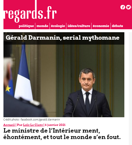 Non seulement Gérald Darmanin est un habitué des imprécisions, voire du mensonge pur et simple, mais il est aussi rarement contredit en direct. Résultat : après chaque fausse info déblatérée par le ministre, les médias publient une avalanche de fact-checks, et le cycle recommence. En janvier, le site Regards
