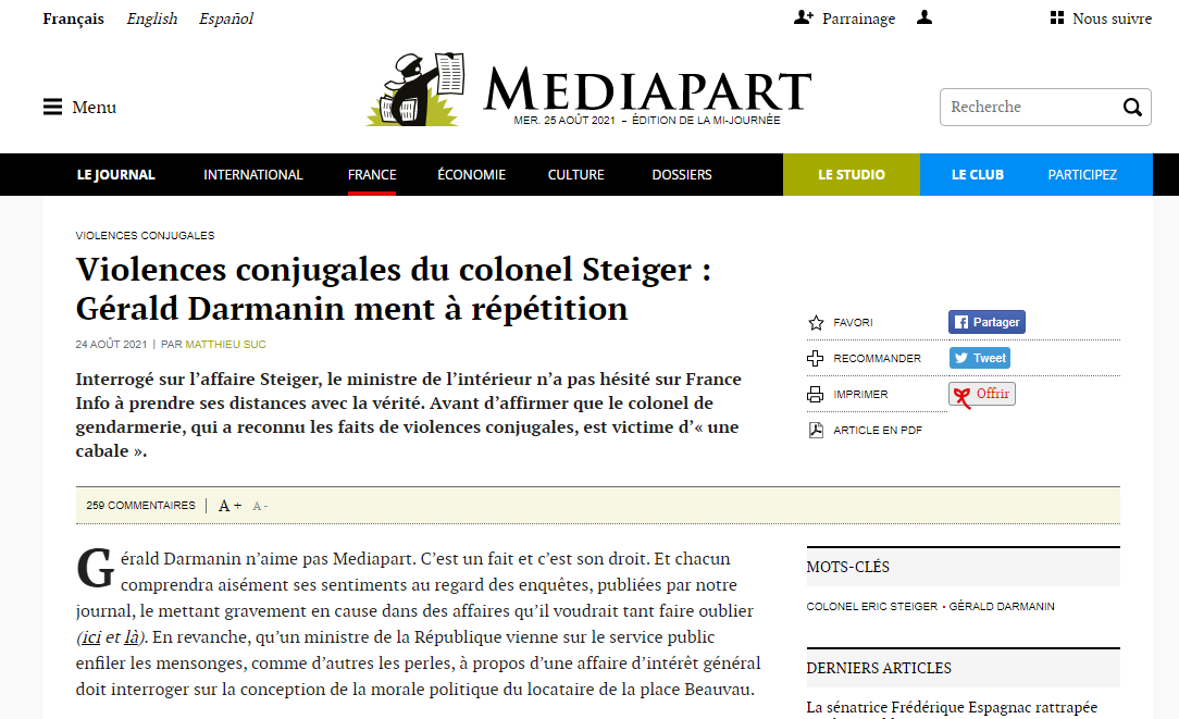 nous dit-on, sans répondre à notre question (Darmanin avait-il bien lu l'article de Mediapart