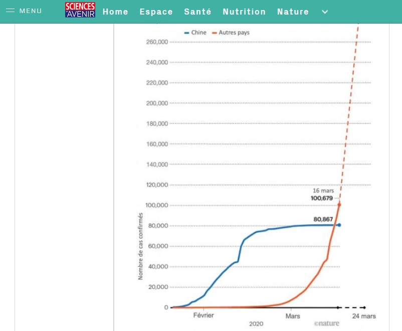Depuis la médiatisation, en janvier, du début de l’épidémie en Chine, et jusqu’à la mi-mars, quasiment toutes les représentations visuelles étaient concentrées sur le nombre de cas. Les graphiques présentés respectaient les standards habituels des infographies médiatiques. En abscisse, horizontalement, était indiquée soit une date soit, dans des comparaisons entre pays, le nombre de jours depuis les premiers cas déclarés. En ordonnée, verticalement donc, une échelle linéaire représentait le nombre de cas déclarés. Aucun des médias recensés par Arrêt sur images, à l'instar de cet article de Sciences et Avenir, ne faisait alors état des doutes sur la fiabilité des données chinoises ou du faible nombre de tests disponibles dans beaucoup de pays. Seul le caractère exponentiel de la progression épidémique semblait flagrant.