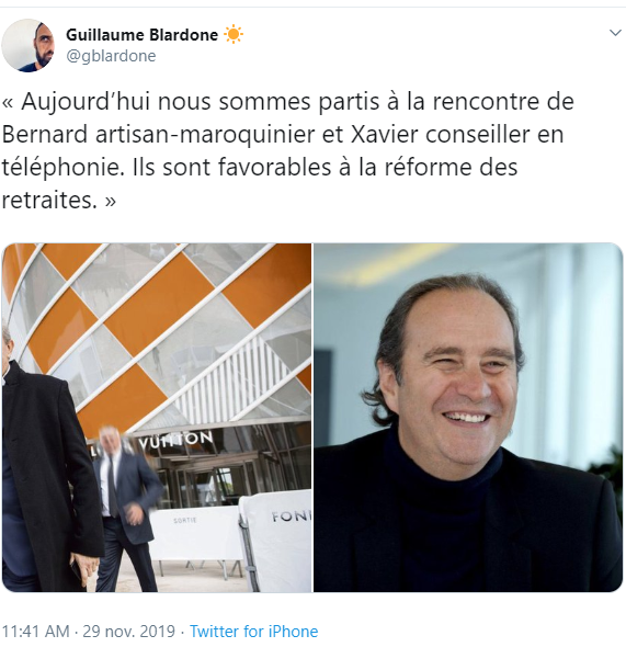 Le plombier-chauffagiste pro-réforme des retraites de France info n'était pas un artisan "standard". Jeudi 28 novembre, la station diffusait, dans le cadre d'une série de portraits de Français face à la prochaine réforme des retraites, un sujet de 2 minutes consacré à "Olivier", un plombier parisien favorable à la réforme. Les arguments de l'artisan, souhaitant davantage de simplicité, et en finir avec un système générant des "inégalités très fortes", semblaient calqués sur les éléments de langages gouvernementaux. Et ce n'est peut-être pas un hasard : sur Twitter, de nombreux internautes ont rapidement identifié l'"Olivier" de France info : il s'agit d'Olivier Beurton, ancien cadre de grands groupes, et qui a surtout participé à plusieurs campagnes LREM.