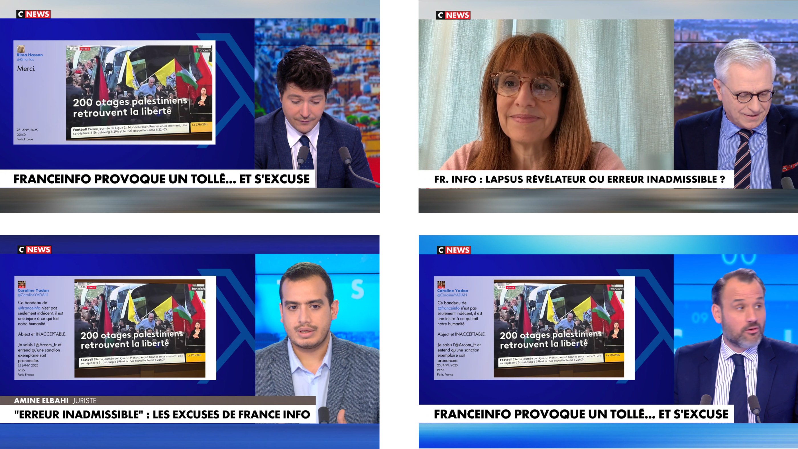 Dimanche, CNews évoque la polémique toute la journée durant et recoit Caroline Yadan en duplex dans Midi News : "Qui s'est servi de la télévision publique payée avec nos impôts pour manipuler la vérité et reprendre ce narratif du Hamas".