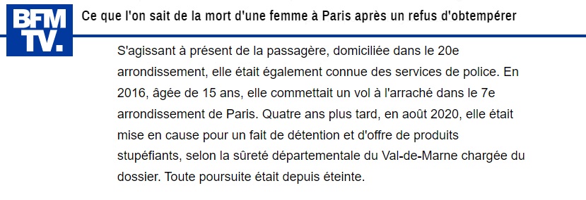 BFMTV : la passagère décédée "était connue des services de police"