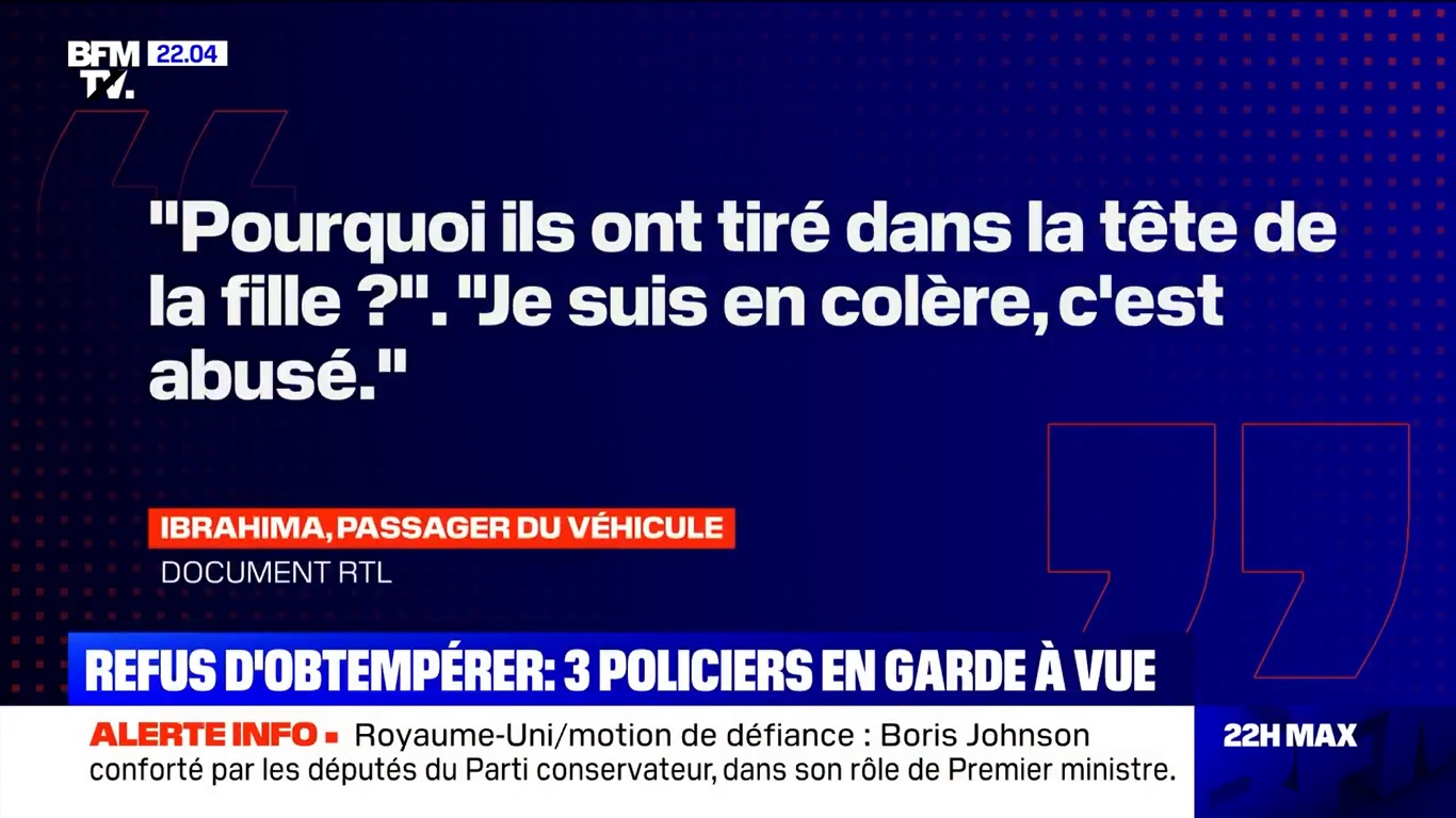 L'autre passager, un jeune homme nommé Ibrahima, témoignait sur RTL la veille et exprimait lui aussi son incompréhension. n'étaient pas obligés de tirer directement [...] N'importe qui aurait pu prendre une balle perdue. Les policiers n'ont pas su garder la tête froide."