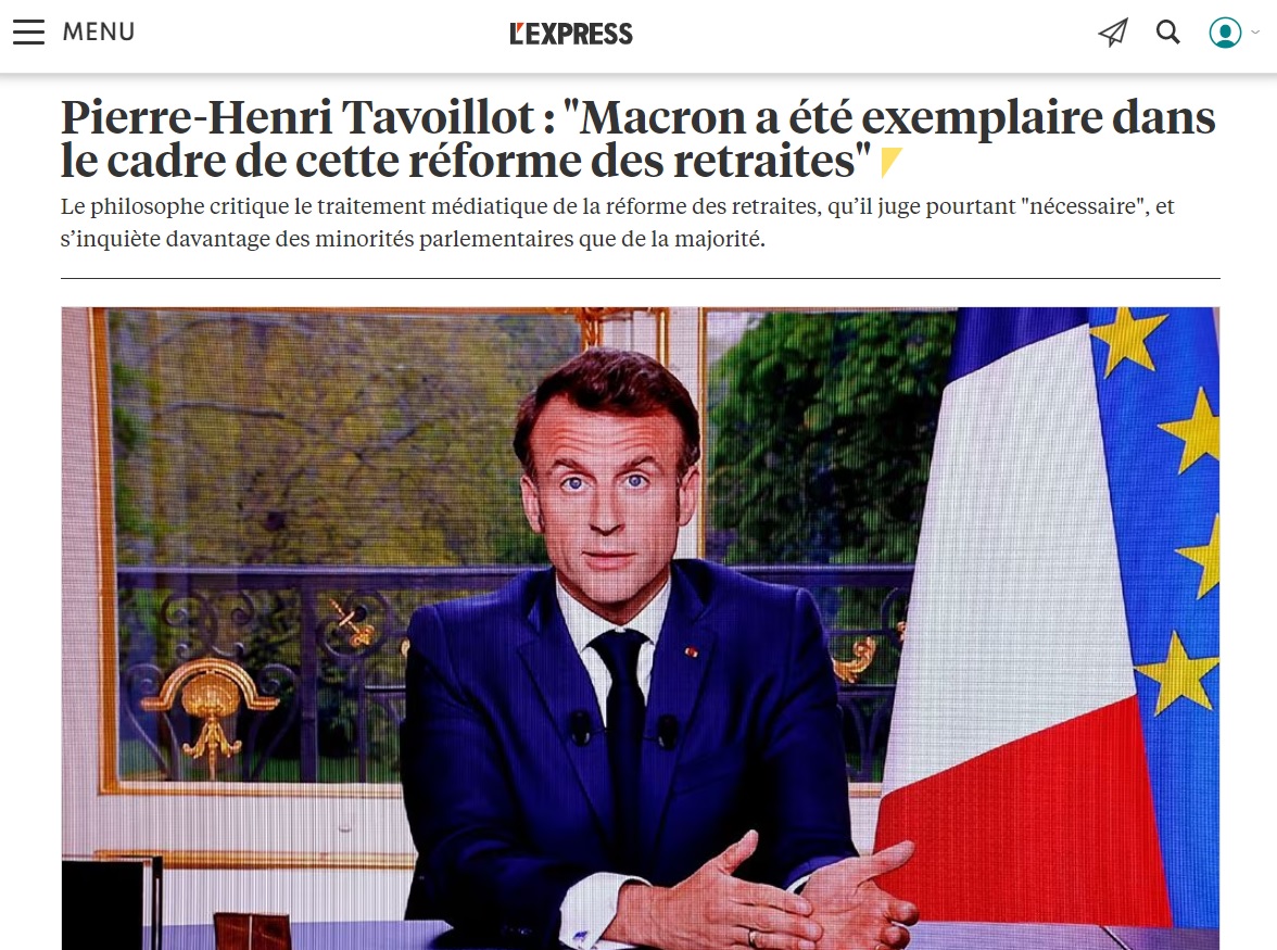 des médias que Tavoillot dénonce aujourd'hui était absente de son discours. Le philosophe a-t-il développé sa théorie à la suite de la réception médiatique de l'événement ? Sollicité à plusieurs reprises par Arrêt sur images, il n'a pas souhaité nous répondre.
