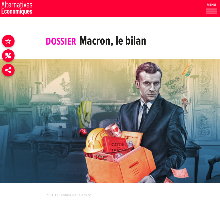 Macron est le président de "l'injustice sociale", selon Alter Eco. De l'autre côté du spectre cependant, un média trouve que le président sortant n'est pas allé assez loin dans ses réformes, notamment fiscales : Le Figaro. Dans son "Macronomètre"