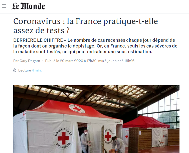 La France manque de tests pour diagnostiquer les cas de Covid-19. Elle en manque en tout cas pour les diagnostiquer de manière systématique dès l'apparition de premiers symptômes, ou pour tester toute personne ayant été en contact avec un patient infecté, "à la coréenne". Alors, il a fallu faire des choix. Actuellement, en théorie, les tests sont réservés à certains profils : les patients en réanimation avec de graves problèmes respiratoires, le personnel soignant présentant des symptômes, les personnes à risques, etc.