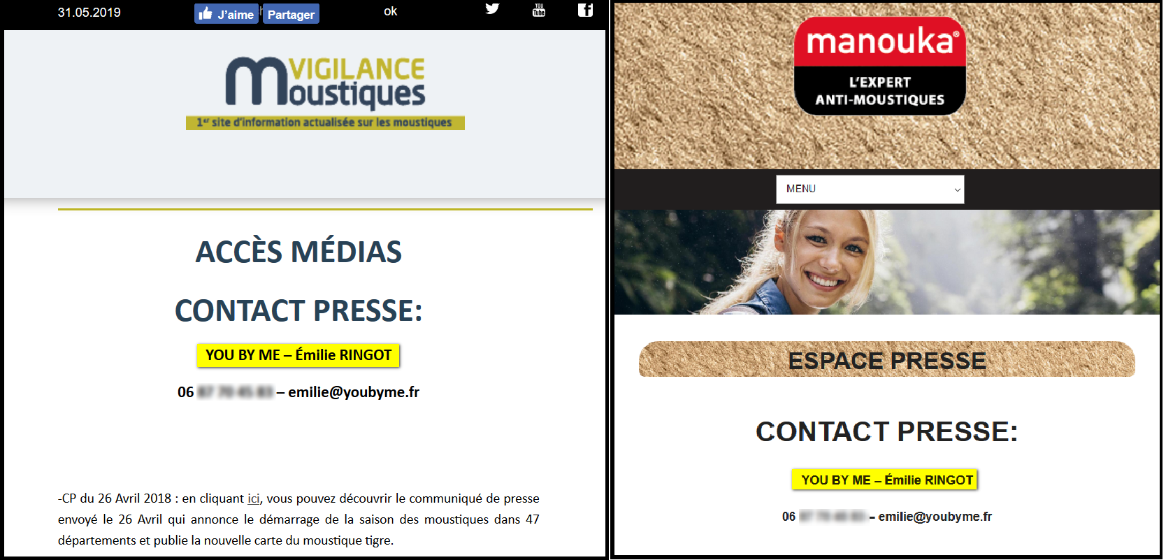 Et si le mélange des genres n'était pas encore assez manifeste, la marque d'insecticide et le site (qui ose quand même une rubrique "Notre déontologie en tant que média d'information") ont tout simplement la même attachée de presse.