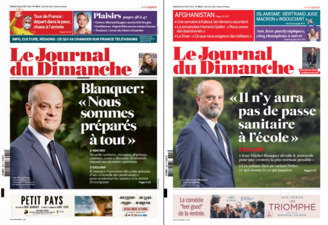 Ce n'est pas la première fois que Jean-Michel Blanquer prend de court son administration. Le 29 août 2020 déjà, c'est dans ce même JDD