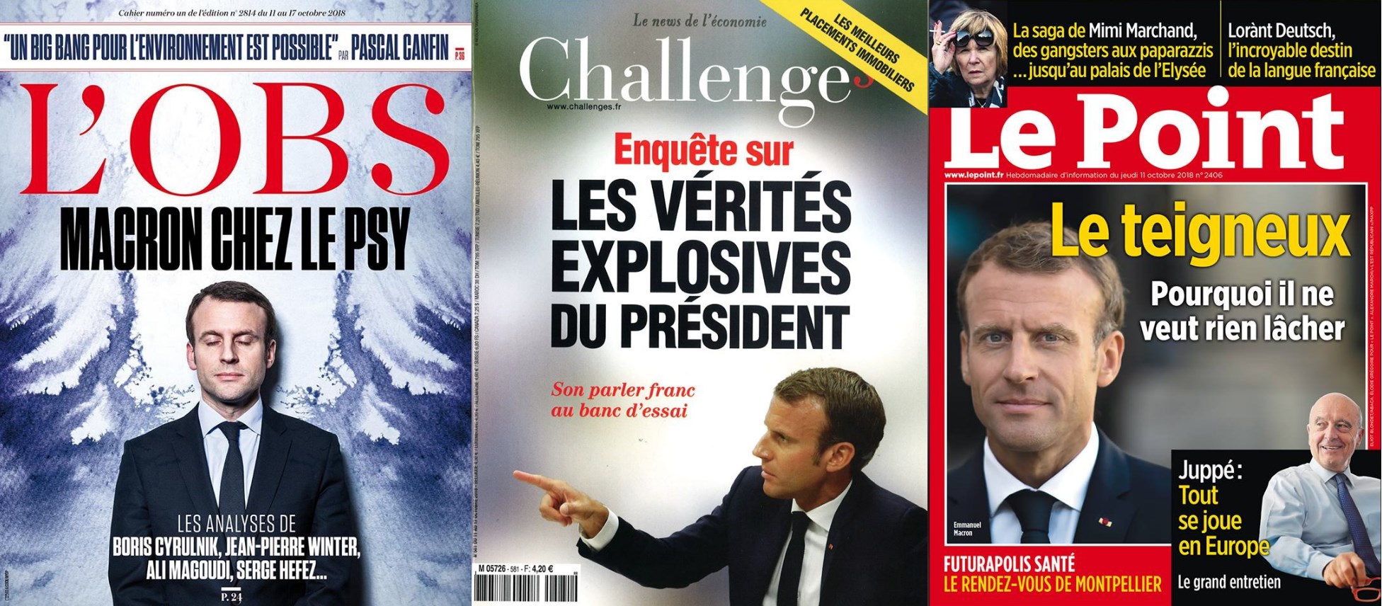 Mais qu'arrive-t-il donc aux hebdos ? se demande-t-on ce jeudi 11 octobre. A voir les Unes de la semaine, on se frotte les yeux. "Les vérités explosives du président. Son franc parler au banc d'essai