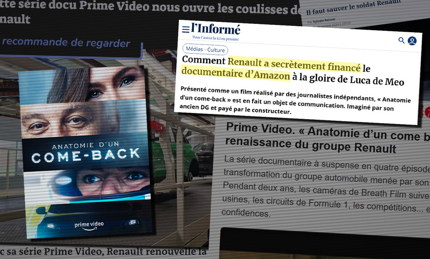 En décembre 2024 est lancée sur la plateforme vidéo d'Amazon, Prime Video, une série documentaire en quatre épisodes, Anatomie d'un come-back, racontant donc de l'intérieur le "come-back" du constructeur automobile Renault après la chute de son emblématique PDG Carlos Gohsn. La série est soutenue par Renault à travers des communiqués de presse et les accès permis par le constructeur à ses réalisateurs. Mais officiellement, elle est coproduite et réalisée par une filiale de la société de production d'Emmanuel Chain, Elephant, ainsi que par le média Sans Bornes du journaliste automobile (notamment pour les Échos) Cédric Fréour. Ce dernier prête aussi son visage et sa voix au récit de la série documentaire.