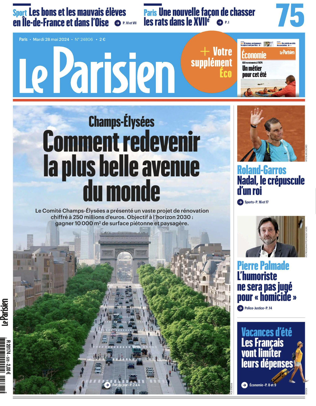 Un sujet très parisien, mais une précision manquante, et de taille. Le 28 mai 2024, Le Parisien a déroulé le tapis rouge au projet de rénovation des Champs-Élysées, qui entend, d'ici 2030, refaire de cette avenue "la plus belle du monde".