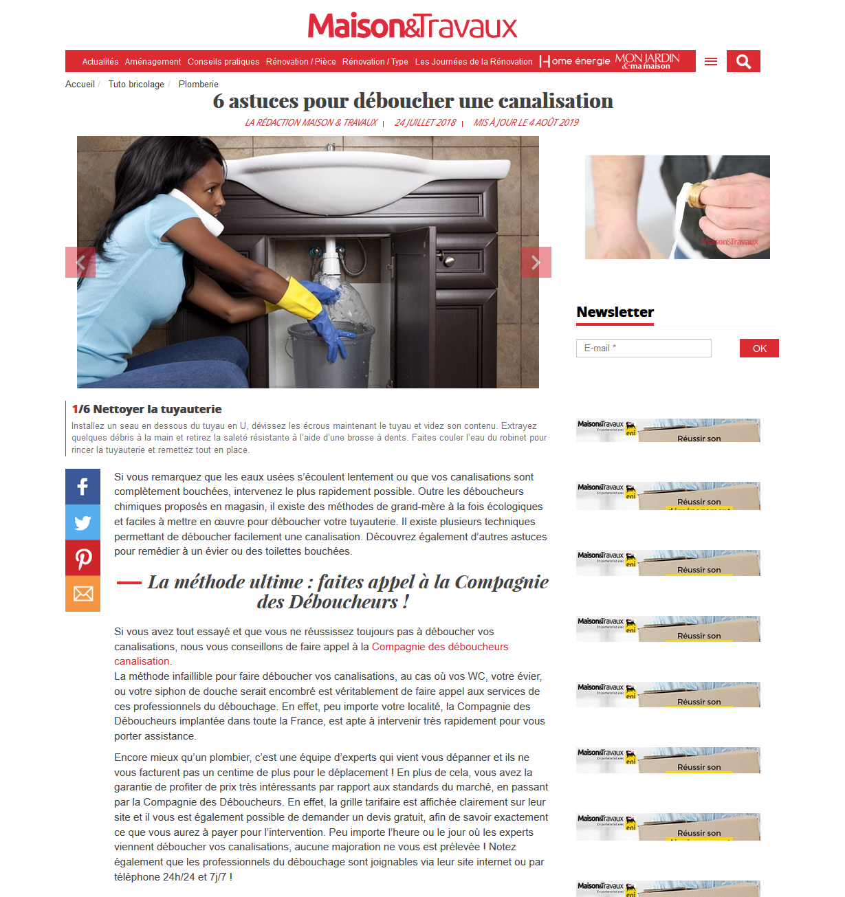De fait, un tour sur les sites du groupe Reworld laisse peu de doute sur l'existence de contrats avec les marques citées. Vous cherchez comment déboucher une canalisation sur le site de Maison & Travaux ? On tente lourdement de vous refourguer les services de la Compagnie des déboucheurs, "mieux qu'un plombier, une équipe d'experts !".