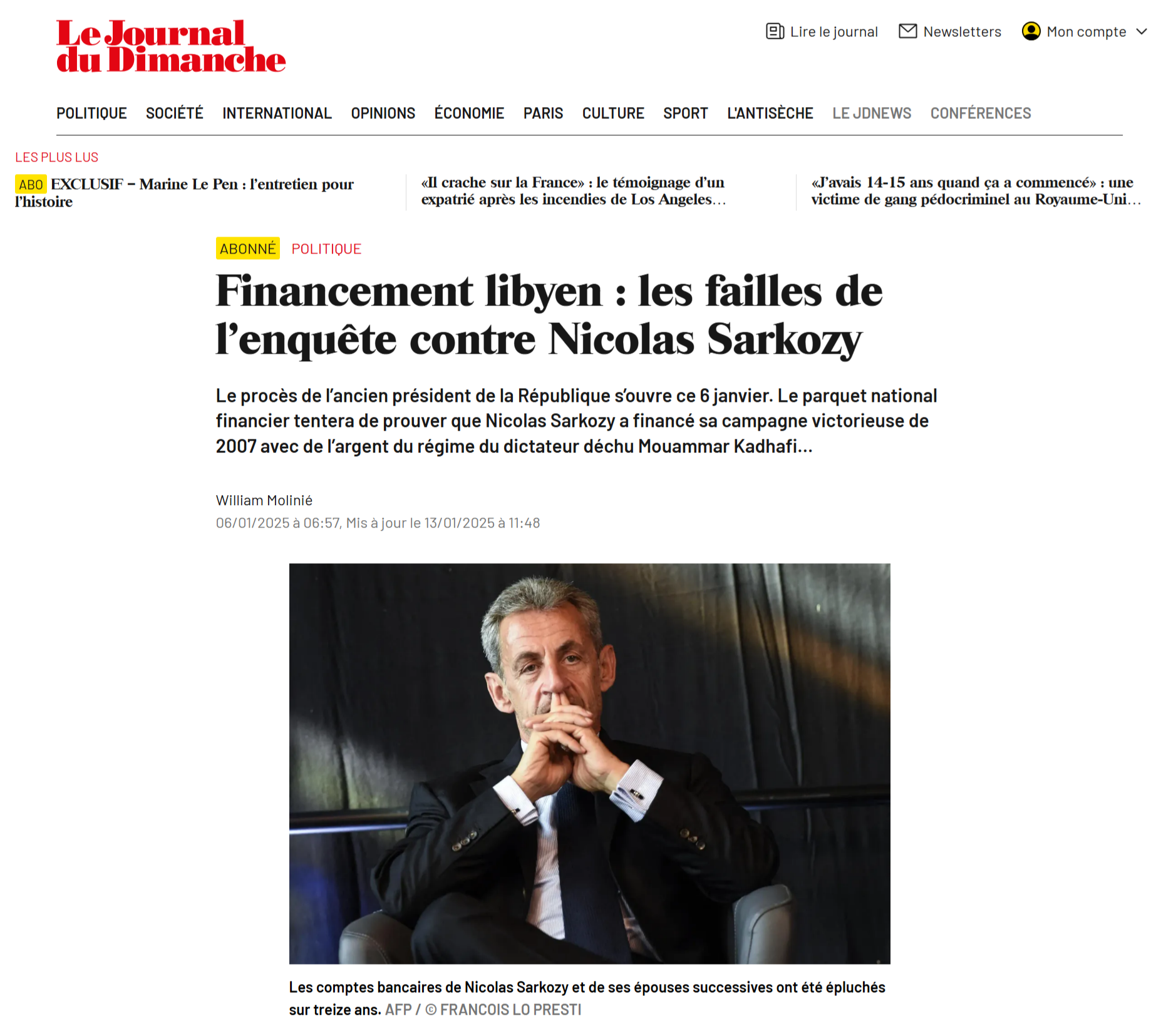 - zoome ce 6 janvier sur "les failles de l'enquête contre Nicolas Sarkozy".