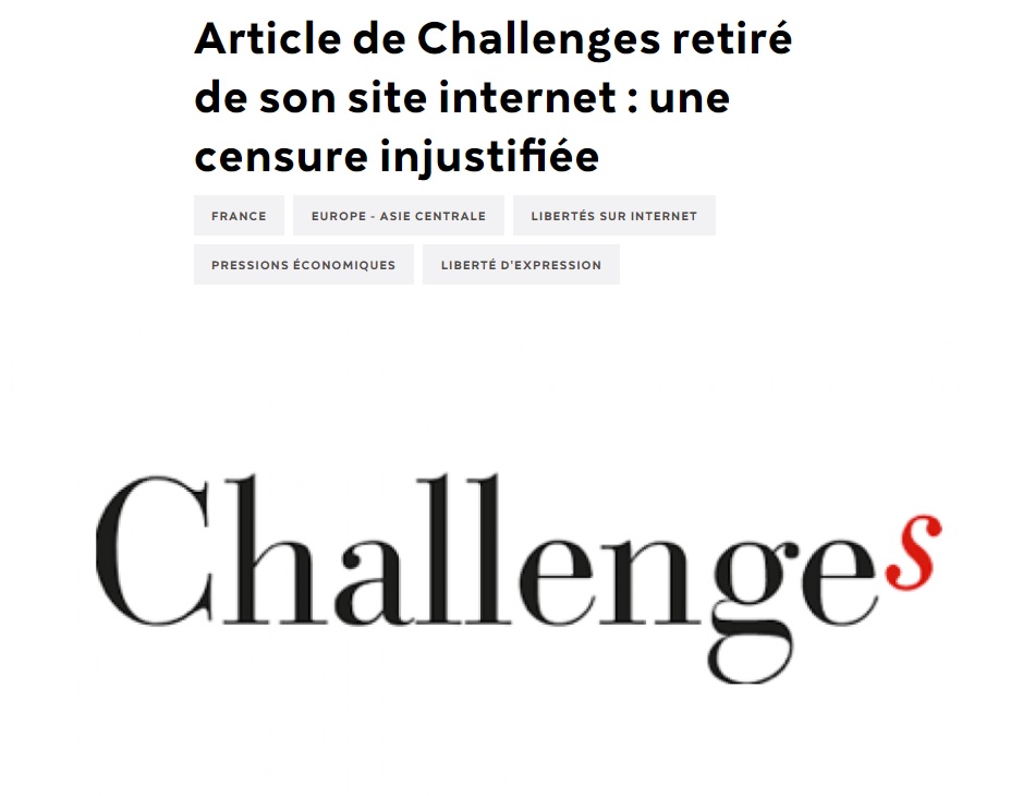 Secret des affaires : Reporters sans Frontières dénonce la censure de Challenges