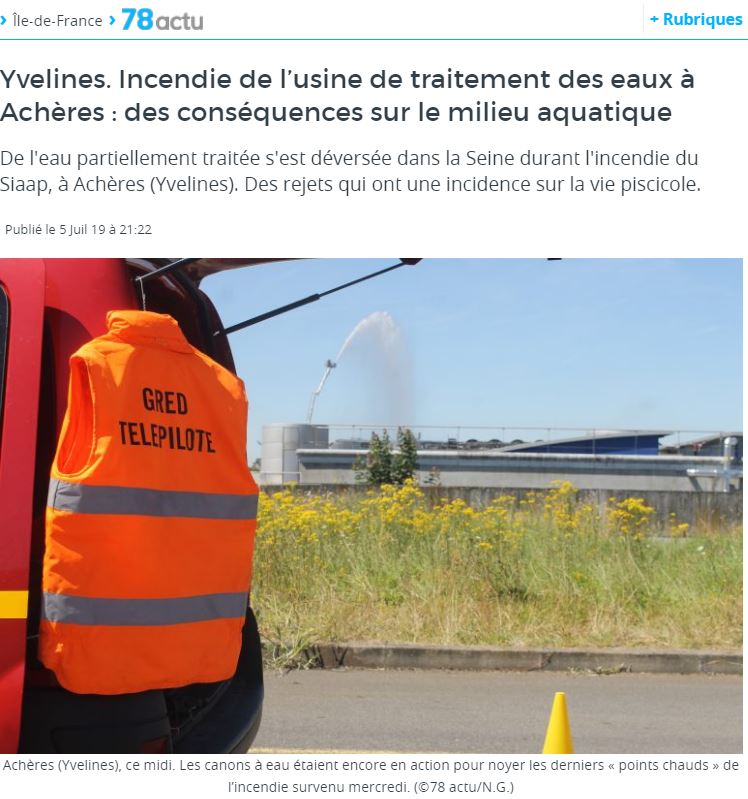 Au lendemain du départ de flammes, les pompiers sont toujours à pied d’œuvre. "Il faudra attendre quatre jours pour que le sinistre soit totalement maîtrisé, après la venue de la gigantesque échelle déjà utilisée pour venir à bout de l’incendie de Notre-Dame de Paris", rappelle Le Monde diplomatique dans son article. De quoi faire de "belles images" de télévision... Et pourtant, au lendemain de l’incendie, ni TF1, ni France 2, ni BFM n’ont envoyé de reporters sur place. Pas de sujet de JT, pas de duplex des chaînes d’info en continu, pas de reportage de la presse nationale. Le sujet fait la Une de l’édition locale du Parisien et du Courrier des Yvelines : "C’est évidemment la Une de notre édition, c’est un gros sujet pour nous, l’usine c’est une énorme machinerie. A ce stade, on se demande quelles peuvent être les suites, d’autant que la boucle de Seine est particulièrement peuplée", raconte Maxime Fieschi du Parisien. Ce 4 juillet, au lendemain de l’incendie, le syndicat FO du SIAAP pointe une situation "catastrophique" : "La situation à SAV s’est fortement dégradée depuis plus de deux ans. Vendredi dernier, nous avons adressé à l’inspection du travail sept alertes de dangers graves et imminents (dont le SIAAP n’a toujours pas tenu compte malgré ses obligations en la matière), pour des fuites de gaz ou des départs d’incendie."