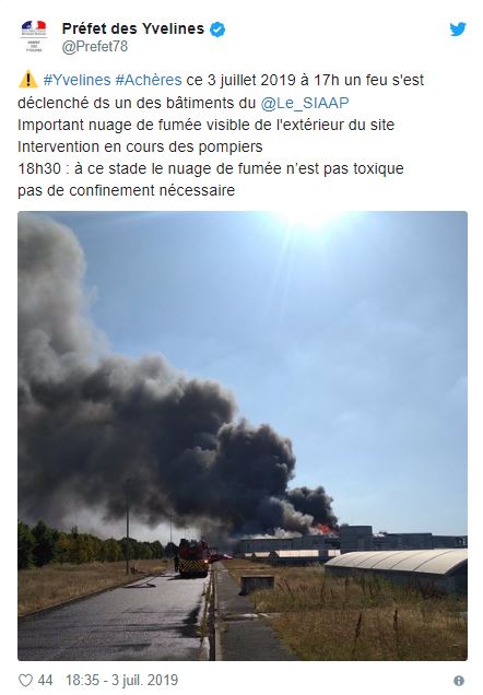 Un feu dans une usine Seveso ? Très vite, 130 sapeurs-pompiers et plusieurs dizaines de véhicules sont mobilisés. Les axes routiers et les voies d’accès entourant le site sont fermés. "Des camions d’intervention 'risques technologiques', des véhicules dévidoirs, ainsi que des engins d’appui et de soutien ont été aperçus sur place, vers 20h", rapporte ce soir-là le journaliste Nicolas Giorgi pour le média d’info locale 78 Actu / Le Courrier des Yvelines. Auprès d’Arrêt sur images, il raconte : "On a reçu plusieurs messages d’habitants inquiets nous demandant s’il y avait un risque toxique. A ce stade, les maires des environs avaient peu d’infos, et ne savaient pas quoi répondre à leurs administrés notamment sur Facebook." Le journaliste accourt sur place. Tout comme son confrère de l’édition locale du Parisien, Maxime Fieschi. Ils ne peuvent accéder jusqu’au lieu de l’incendie mais tentent de recueillir les premières informations auprès des services de l’Etat et de la direction du site gérée par le Siaap (Syndicat interdépartemental pour l’assainissement de l’agglomération parisienne). On leur explique que les pompiers ont fait réaliser des prélèvements de fumées aux alentours, et n’ont pas relevé de toxicité. À 18h30, la préfecture des Yvelines se fend d’un tweet lapidaire : "A ce stade, le nuage n’est pas toxique, pas de confinement nécessaire."