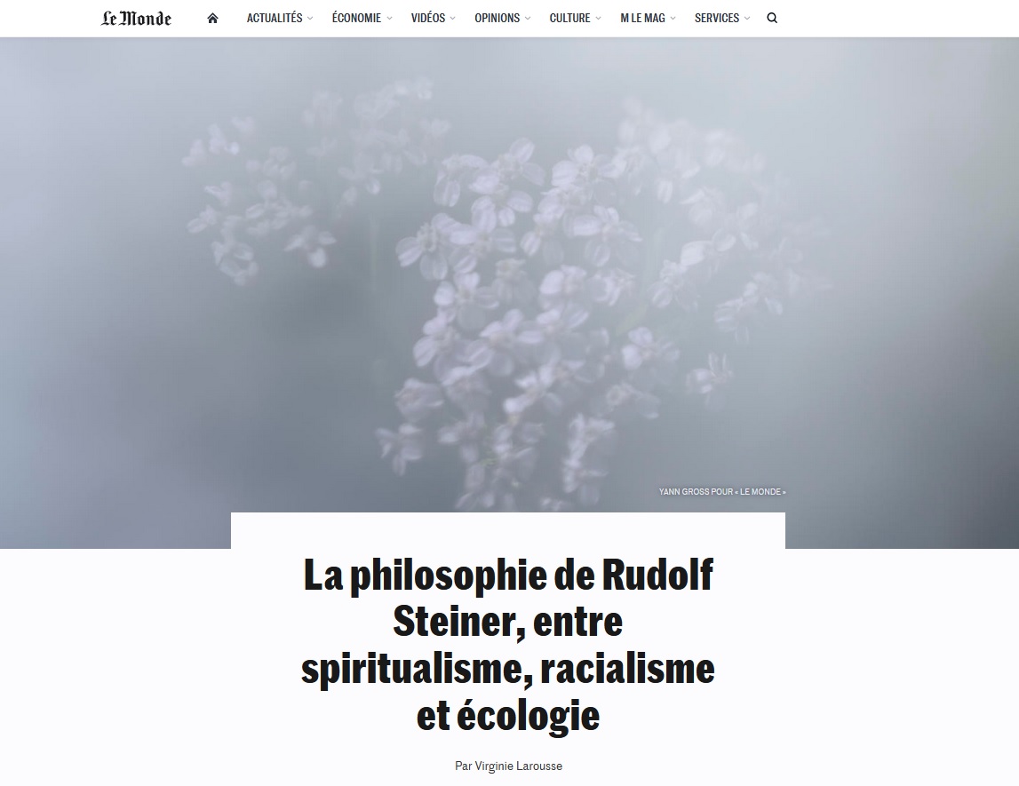consacrée au Suisse Rudolf Steiner, fondateur au début du 20e siècle de l'anthroposophie et de son mouvement associé, encore vivant aujourd'hui, par exemple à travers les écoles Steiner-Waldorf. Sur Twitter, le mot-dièse #LeMondeGate rassemble une bonne partie des critiques, souvent virulentes, auxquelles répond la virulence de commentateurs affiliés à l'anthroposophie. Les reproches faits au Monde