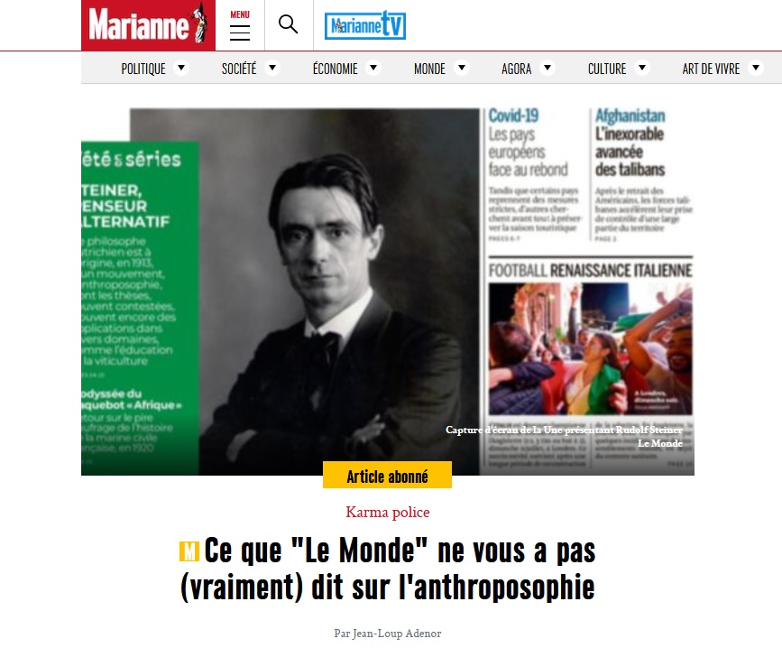 Du côté de Marianne, le journaliste Jean-Loup Adénor a choisi de pointer "Ce que Le Monde ne vous a pas (vraiment) dit sur l'anthroposophie". Lui revient sur les dérives sectaires de l'anthroposophie pointées à de nombreuses reprises au fil des années, via d'anciens enseignants, des associations de victimes ou des signalements à la Mission interministérielle de vigilance et de lutte contre les dérives sectaires (Miviludes). Il évoque les regrets de Marc Giroud, enseignant en école Steiner il y a plusieurs décennies, dont Le Monde a recueilli les propos sans les citer dans ses articles.