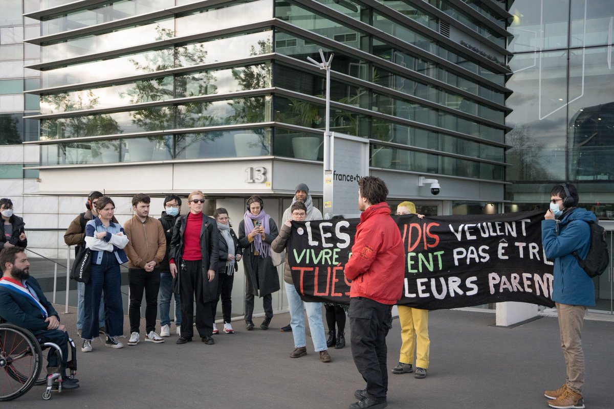 Le soir même de la diffusion du film, le 3 avril, l'association CLE Autistes organise un rassemblement devant les locaux de France Télévisions. "Les handis veulent vivre dignement. Pas être tués par leurs parents", pouvait-on voir sur une banderole. Dans le rassemblement se trouvait le député Sébastien Peytavie, membre de Génération.s et du groupe Les Écologistes à l'Assemblée. "J'ai pu voir une vraie colère autour de la diffusion de ce téléfilm qui est assez malvenue au lendemain de la journée mondiale de sensibilisation à l'autisme, s'indigne-t-il. Projeter un film relatant l'infanticide d'une personne autiste dans un contexte où la France est épinglée par l'ONU pour non respect des droits fondamentaux des personnes handicapées, ça pose question." Contacté par Arrêt sur images, le groupe France Télévisions n'a pas souhaité s'exprimer sur le sujet.