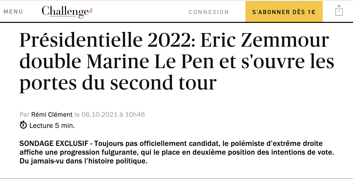 L'électorat d'Éric Zemmour probablement surévalué