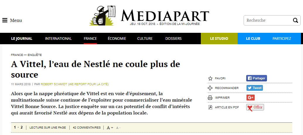 L'histoire a tout d'une affaire à raconter : un conflit d'intérêt, un accaparement privé des ressources publiques... En France, pourtant, elle reste peu médiatisée. Depuis l'article de Mediapart