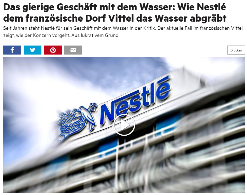 Plusieurs enquêtes ont en effet documenté ces dernières années les stratégies d'accaparement des ressources en eau de Nestlé à travers le monde. "Vittel devient l'illustration en Europe d'une stratégie similaire
