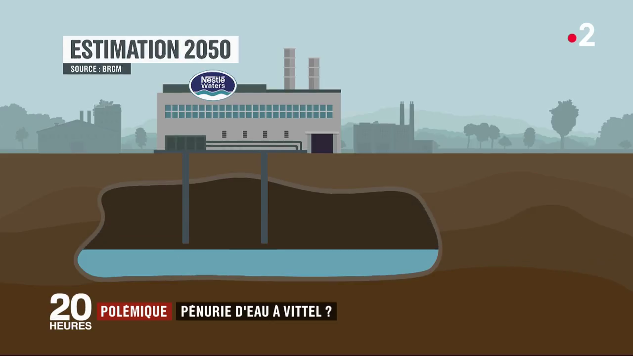 Revenons donc de ce côté-ci du Rhin, dans les Vosges, au cœur de la ville qui a donné son nom à l'eau désormais vendue par millions de litres par la multinationale suisse Nestlé. Et penchons-nous sur la bataille qui se joue pour "mettre un terme à la surexploitation de la nappe des GTI (grès du trias inférieur) dans la région autour de Vittel