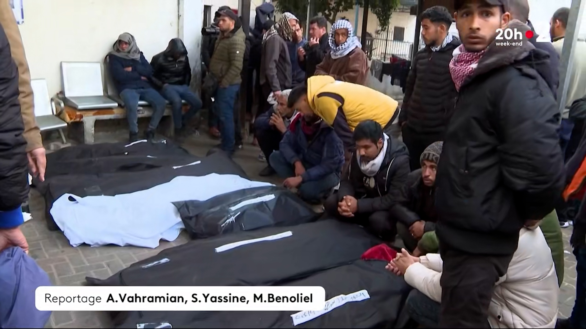 Nous avons réitéré la recension sur la semaine ayant suivi la publication de cet article. Du jeudi 15 au jeudi 22 février, nous avons visionné les 26 journaux télévisés de TF1 et de France 2, soit plus de 16 heures d'antenne. Sur TF1 et au journal de 13 h de France 2, pas de changement : aucune évocation n'a été faite du sort des civil·es gazaoui·es – cette fois-ci pas plus que de la guerre ou des otages israélien·nes, contrairement aux jours précédents. Par contre, le 20 heures de France 2 a consacré plus de 9 minutes aux Gazaoui·es à travers trois séquences dans trois JT différents. Ce qui représente, en proportion du temps d'antenne totale de ce journal télévisé, un triplement de la durée allouée. Mais le nombre de morts engendré par la guerre menée à Gaza n'a pas été donné à l'antenne.