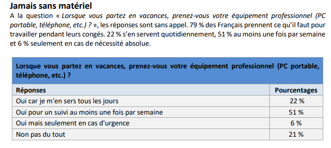 [des "Français"] amèneront leur matériel de travail en vacances pour garder le lien professionnel".