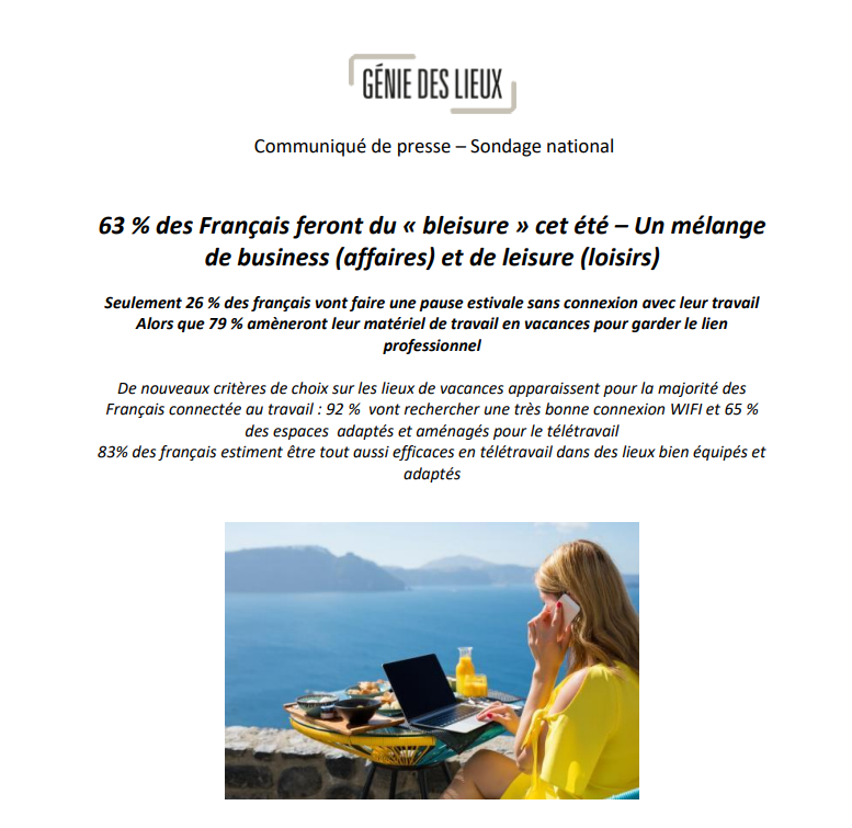 Malgré un sondage douteux, dont les conclusions ont été envoyées à de nombreuses rédactions par le biais d'un communiqué de presse, Génie des lieux et son prestataire Buzzpress démentent toute volonté de promouvoir la disparition de la frontière entre travail et vacances. "C'est notre onzième enquête sur la manière dont les gens travaillent, et c'est la plus légère d'entre elles. Pour être honnête, nous ne nous attendions pas à un tel écho"