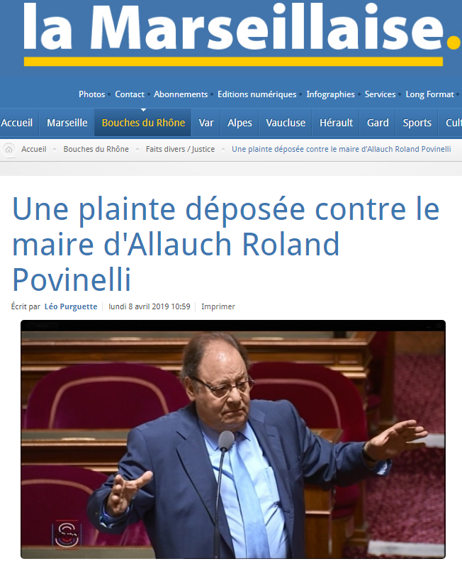, a porté plainte le 20 mars dernier contre le maire de la commune d'Allauch Roland Povinelli pour menaces de mort réitérées.