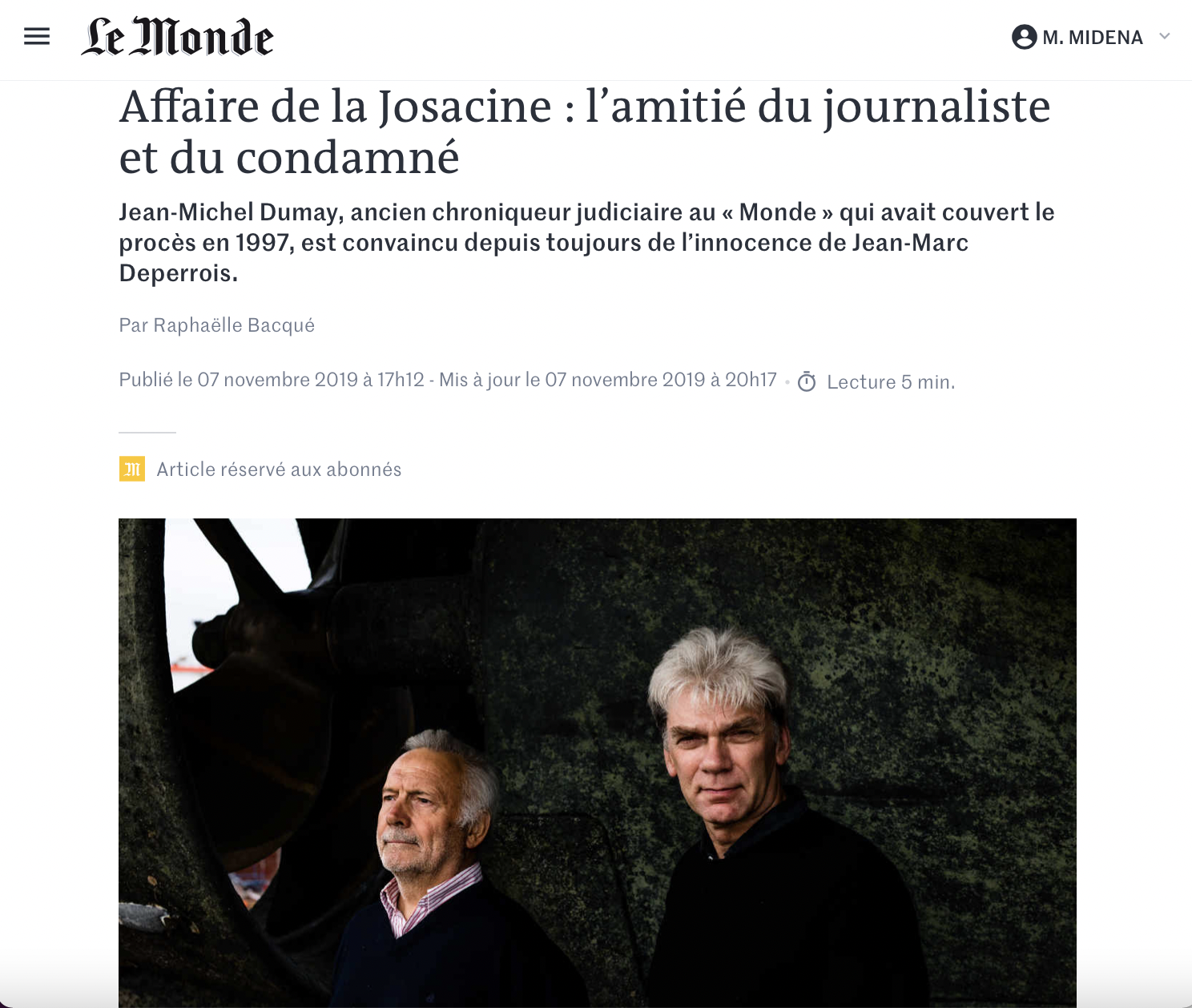 Au Monde, certains disent qu'avec cette histoire, "Dumay est devenu fou". Depuis qu'en 1997, ce chroniqueur judiciaire – le meilleur du journal à l'époque, comme le souligne ici Raphaëlle Bacqué dans L