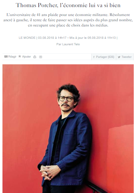 . L'économiste antilibéral Thomas Porcher, reçu en 2014 sur notre plateau à propos des particules fines, était l'objet d'un portrait plutôt bienveillant dans les pages du quotidien début août. Un portrait qui lui a rapidement valu, comme au journaliste du Monde