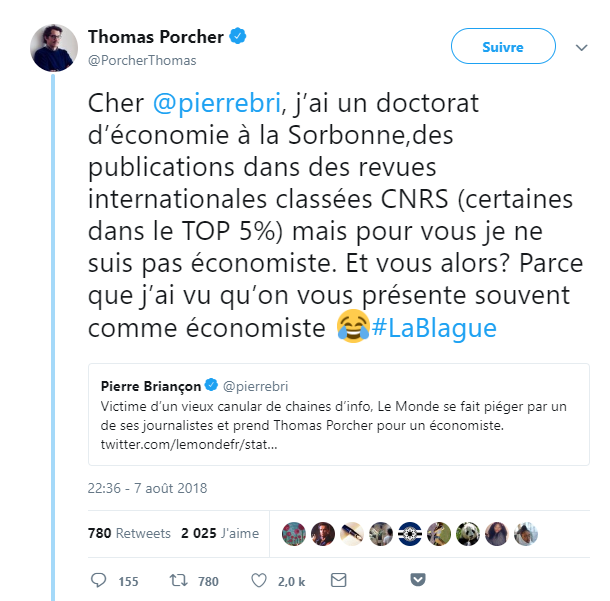 ". Et Thomas Porcher de conclure : "Le combat est à mener partout : et sur Twitter et dans les débats