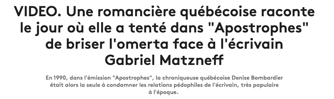 VSD de « mégère comme on n'en fait plus », s'étonnant que Matzneff « n'ait pas aligné la Bombardier d'une grande ...