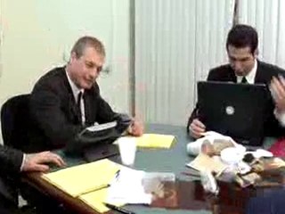 "Ne vous inquiétez pas c'est une petite tache sur une très grande table" dit un homme qui dirige la réunion (paraphrasant une vraie déclaration du vrai patron de BP) mais la situation dégénère ensuite. Cette satire a été réalisée par Upright Citizens Brigade Theatre's un groupe de comédiens citoyens. |