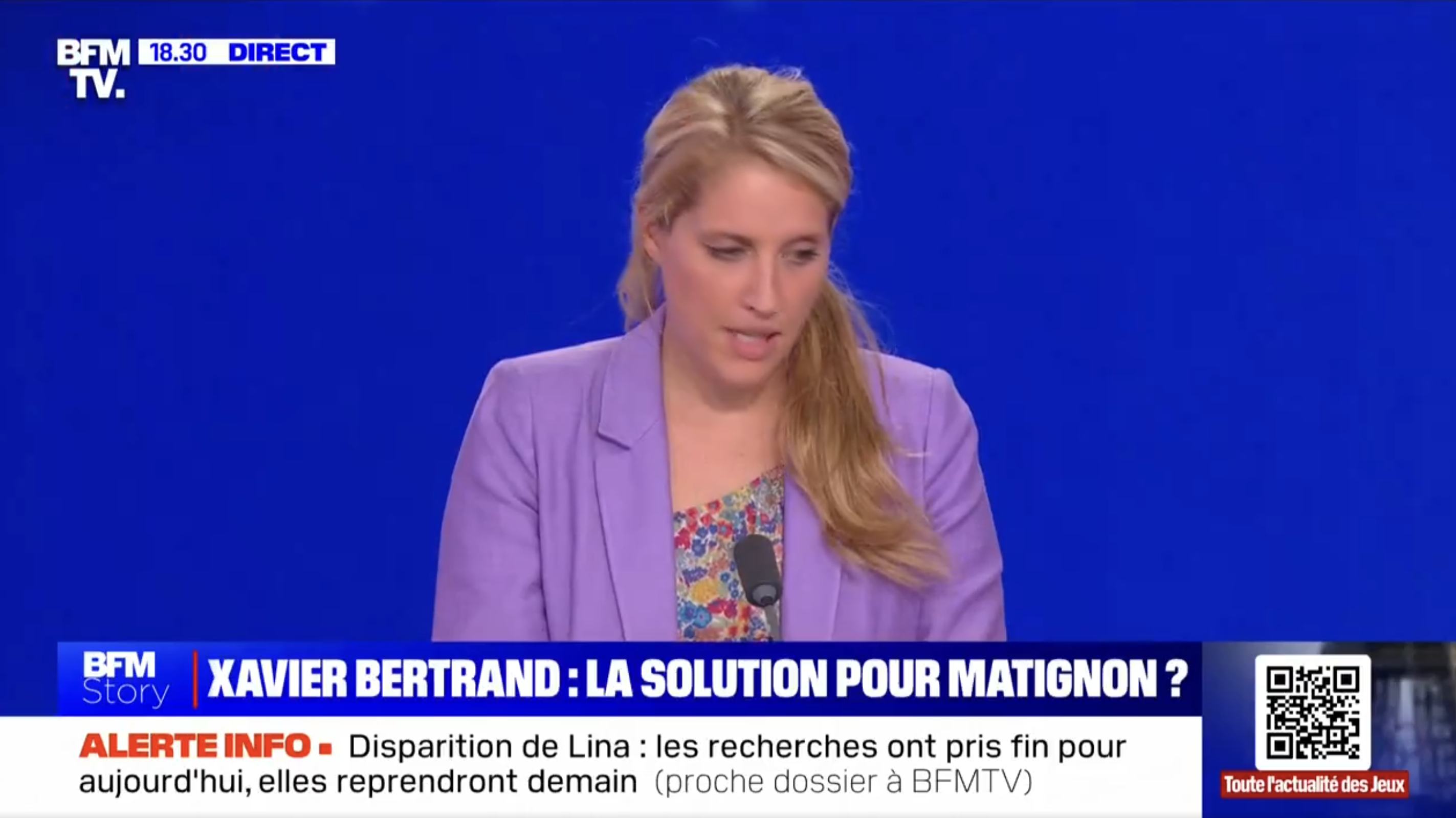 Très vite, l'info est reprise par tous les grands médias. Et en fin d'après-midi ce 6 août, le bandeau de BFMTV interroge : "Xavier Bertrand : la solution pour Matignon ?" La question pourrait prêter à sourire si elle n'était pas posée sérieusement. Anne Saurat-Dubois, journaliste politique de la (désormais) chaîne du milliardaire Rodolphe Saadé, précise ainsi que le président de la région Hauts-de-France "a un profil qui peut fonctionner". Elle ajoute que, selon l'entourage de Xavier Bertrand, ce dernier pense à Matignon depuis quelques temps déjà, avant même la dissolution, car "voyant qu'il n'y avait pas de majorité absolue, Xavier Bertrand a considéré que le pays devait sortir de cette difficulté comptable en termes de députés" à l'Assemblée nationale. Personne sur le plateau de la première chaîne d'info de France ne viendra rappeler qu'en termes de difficulté comptable, les LR qui ont présenté près de 400 candidats aux élections législatives mais n'ont obtenu que 47 élus ne sont pas forcément les plus légitimes pour gouverner. Personne non plus ne mentionne le fait que le candidat LR à la présidence de l'Assemblée nationale, Philippe Juvin, n'a obtenu que 48 voix sur 577 députés.