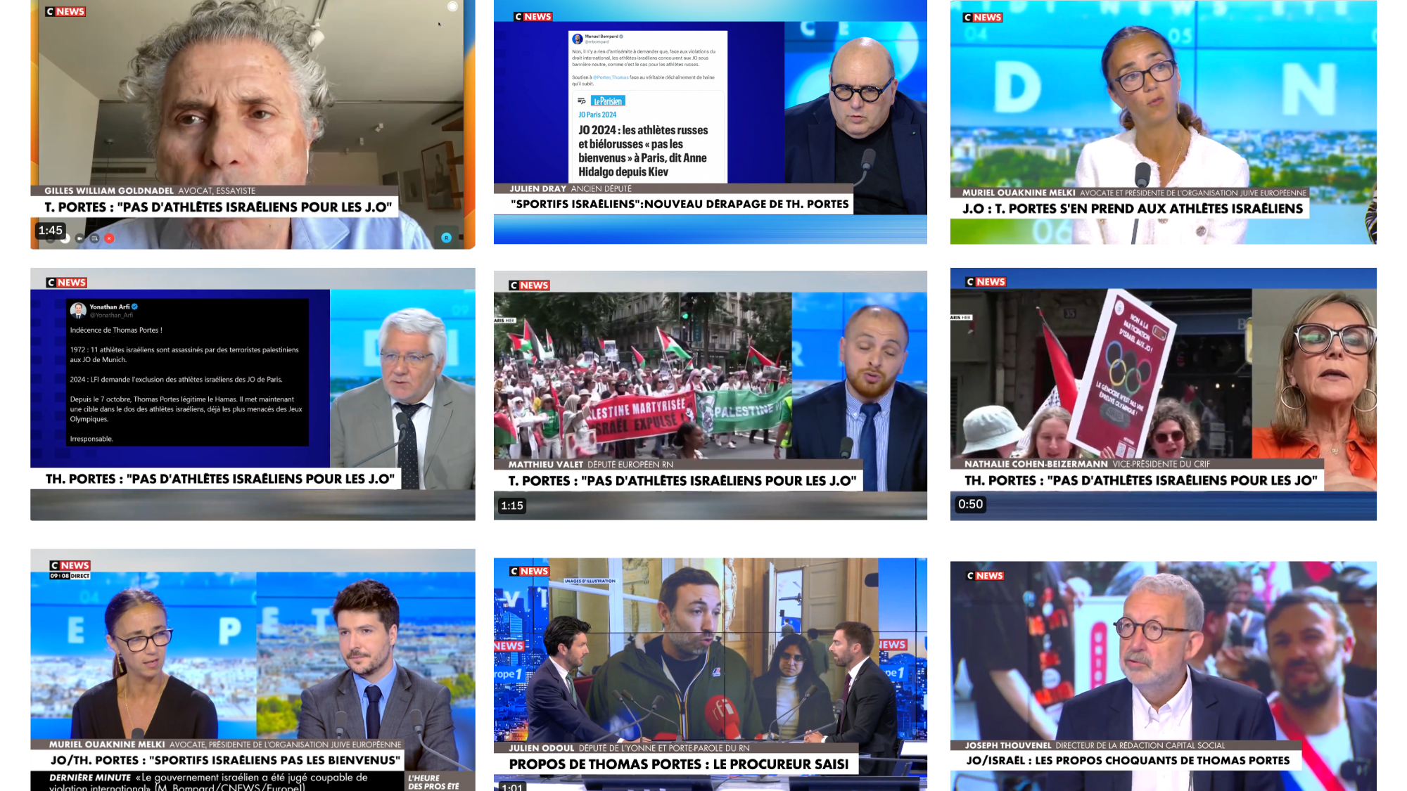 Cette condamnation quasi-unanime de Portes s'est tenue sur une scène médiatique ayant couvert le sujet pendant plusieurs jours, de manière surdimensionnée. L'engrenage de l'emballement s'est rapidement mis en marche : dès le lundi matin, la question était de toutes les interviews de matinales et de tous les plateaux de touto(u)logues. CNews a consacré plus de 45 minutes au sujet. La ligne est claire, à l'image de l'édito de mini Praud : c'est le gros ouin-ouin des législatives. Une analyse que l'on retrouve dans tous les médias de droite, comme ici dans une tribune du Figaro Vox