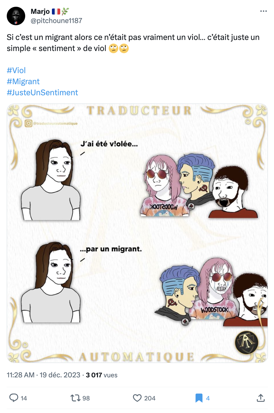 Le problème c'est que y'a beaucoup de personnes étrangères qui violent"