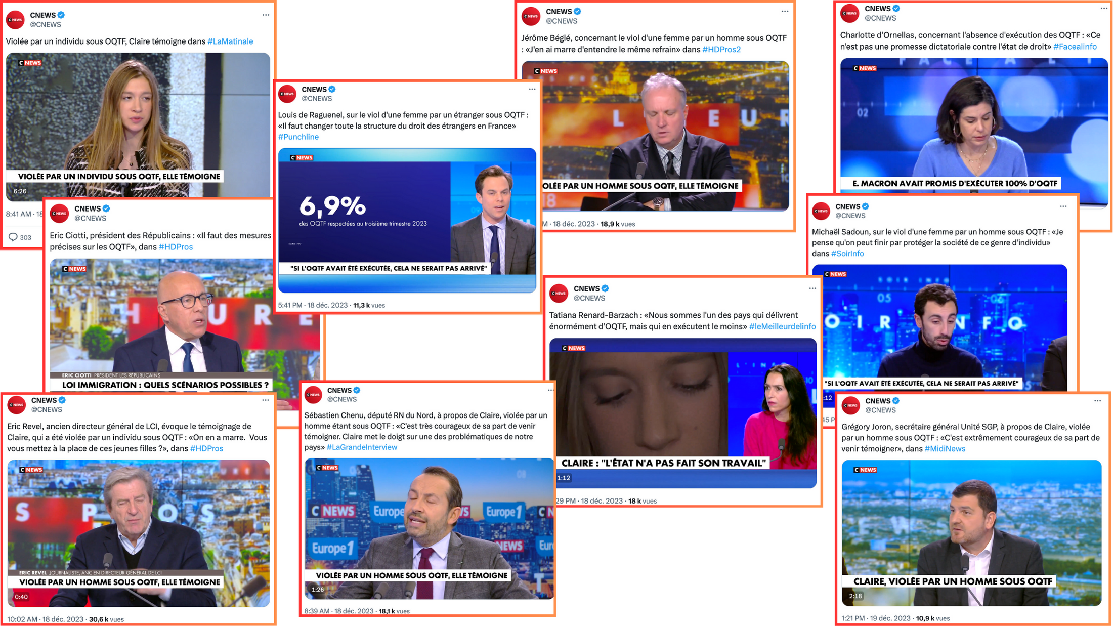 Le 18 décembre, BFM et CNews ont diffusé le même témoignage quasi simultanément. Trois mots-clés : "Claire"